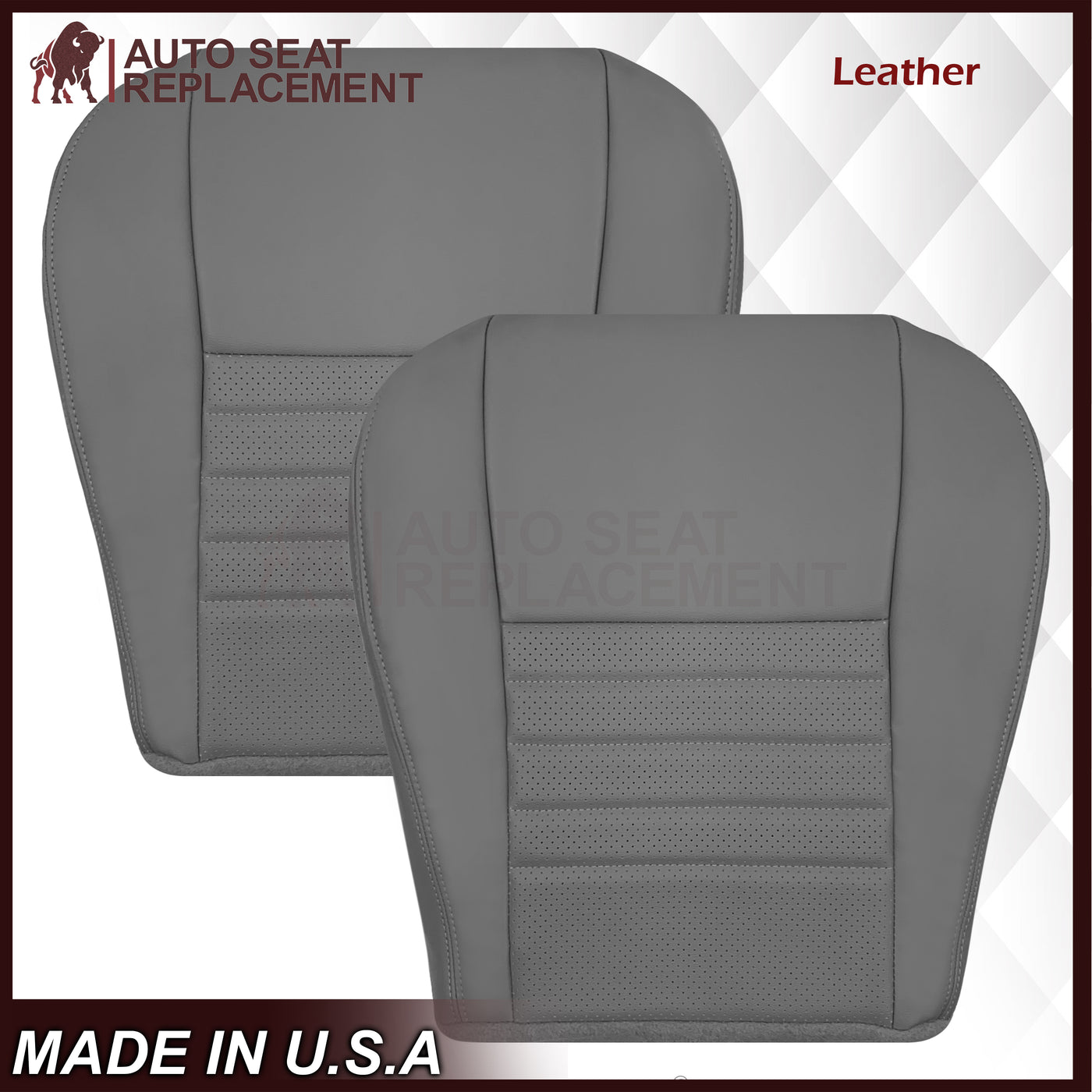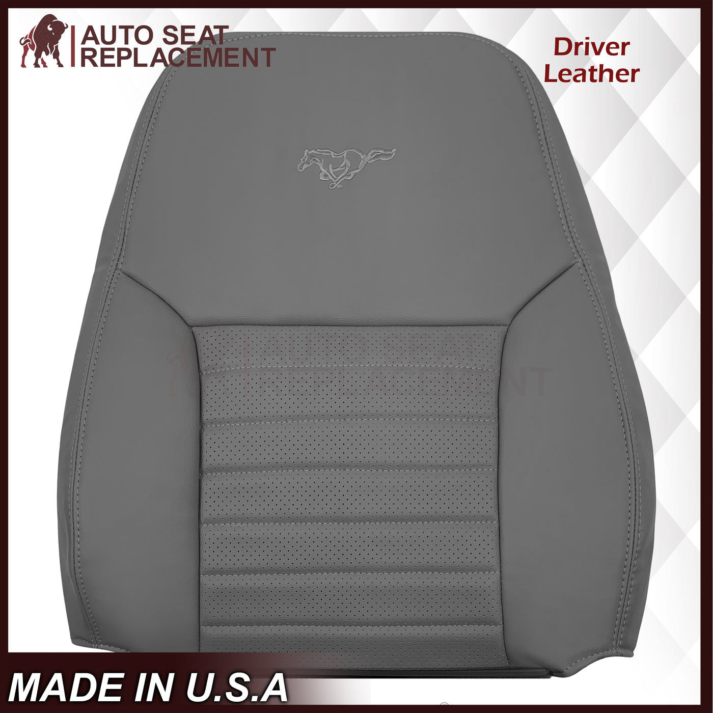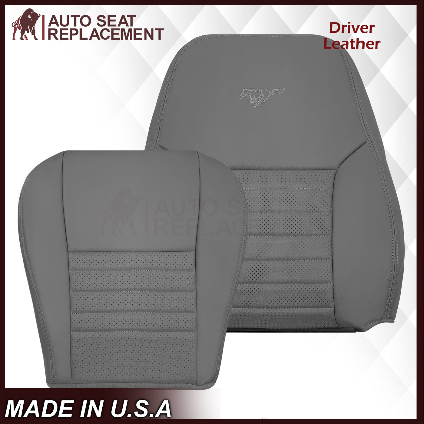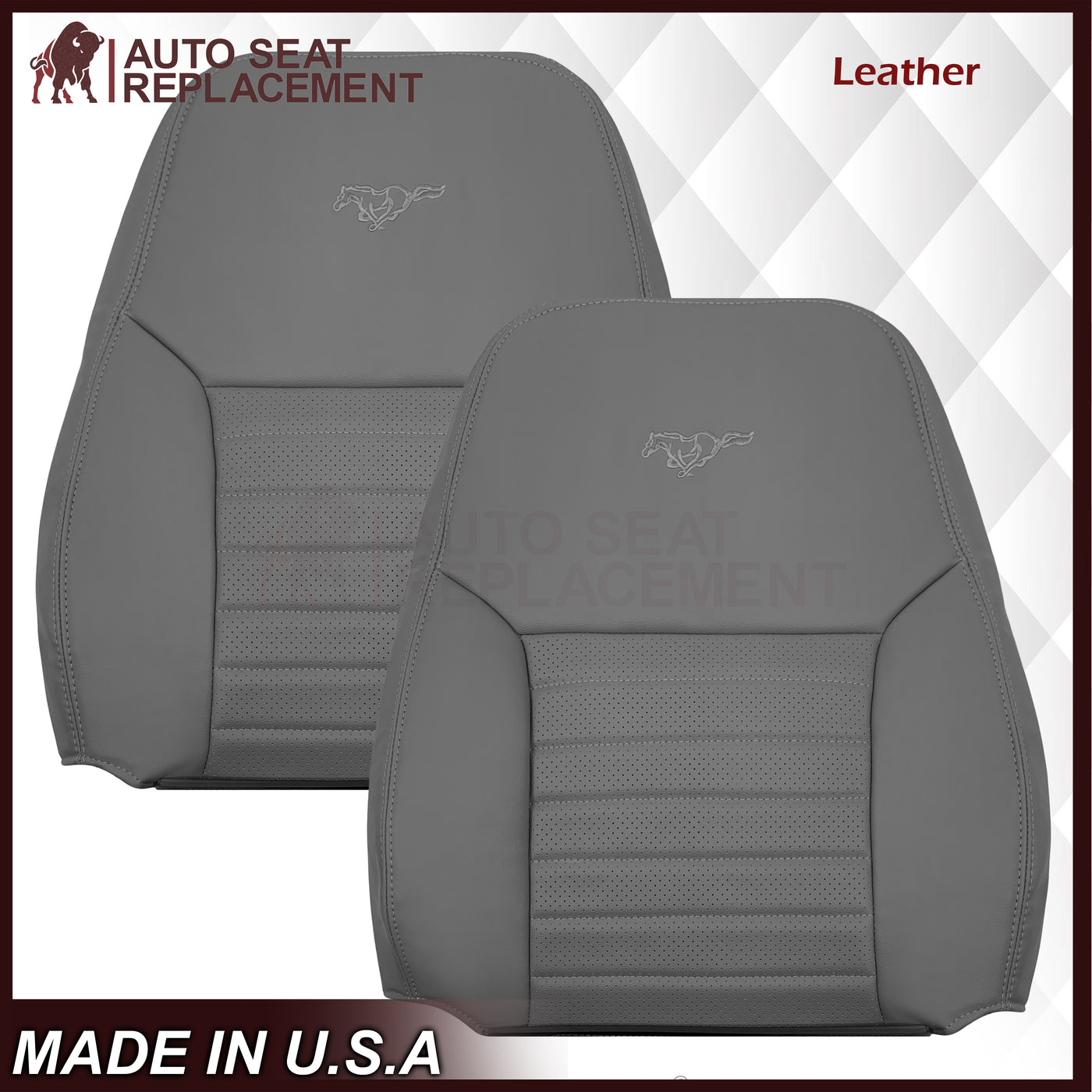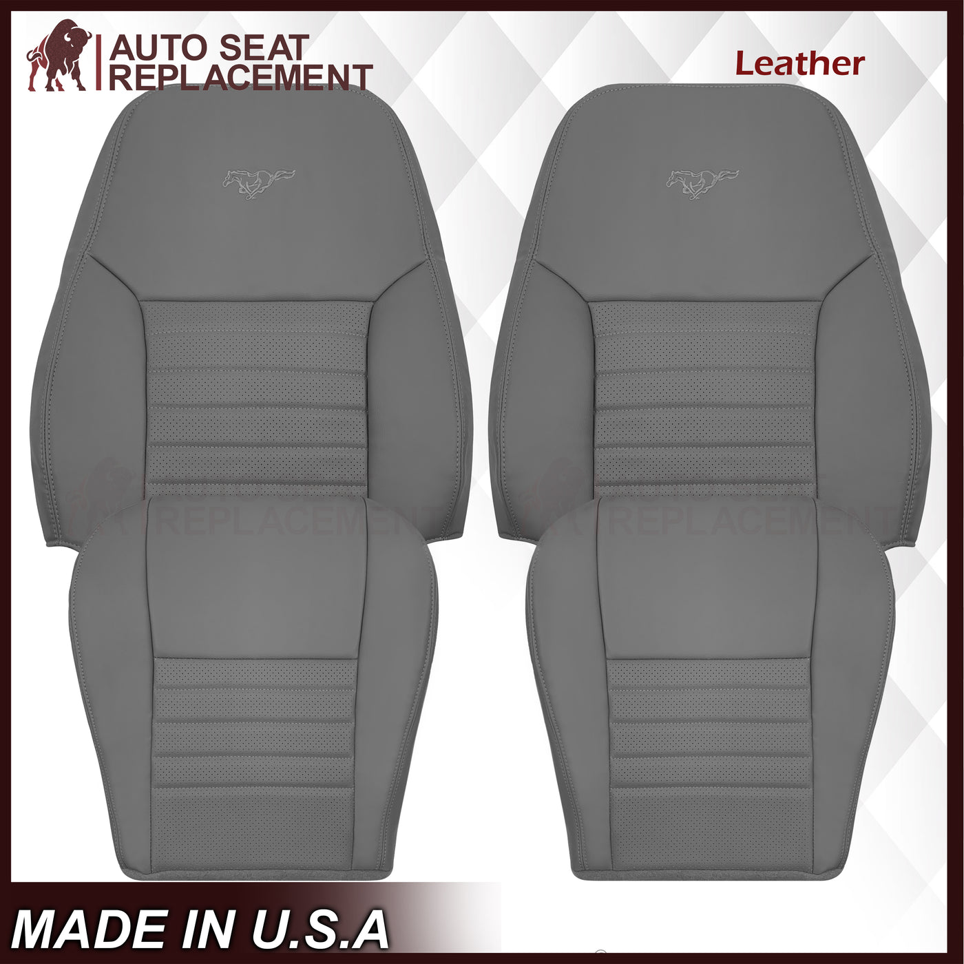1999-2004 Ford Mustang GT V8 Replacement Cowhide Leather OR Synthetic Leather Seat Cover: Gray, Perforated