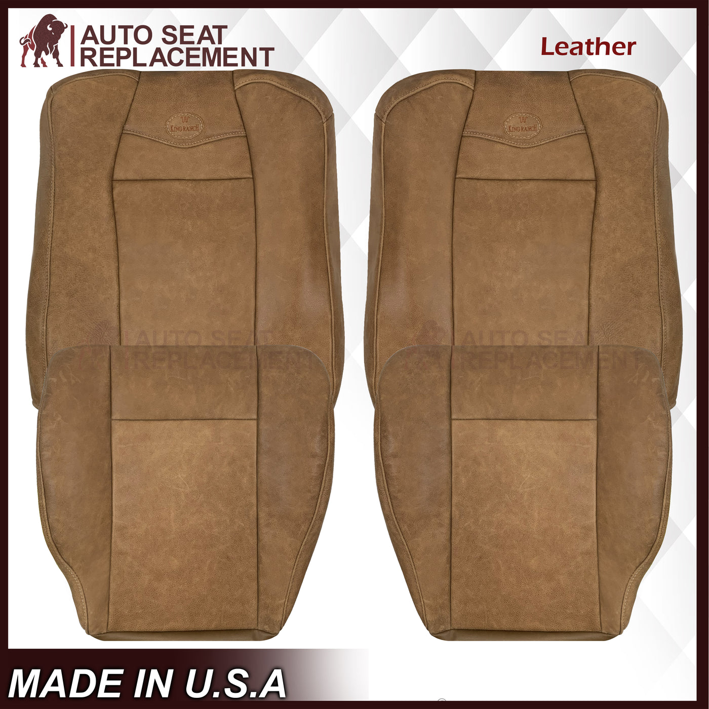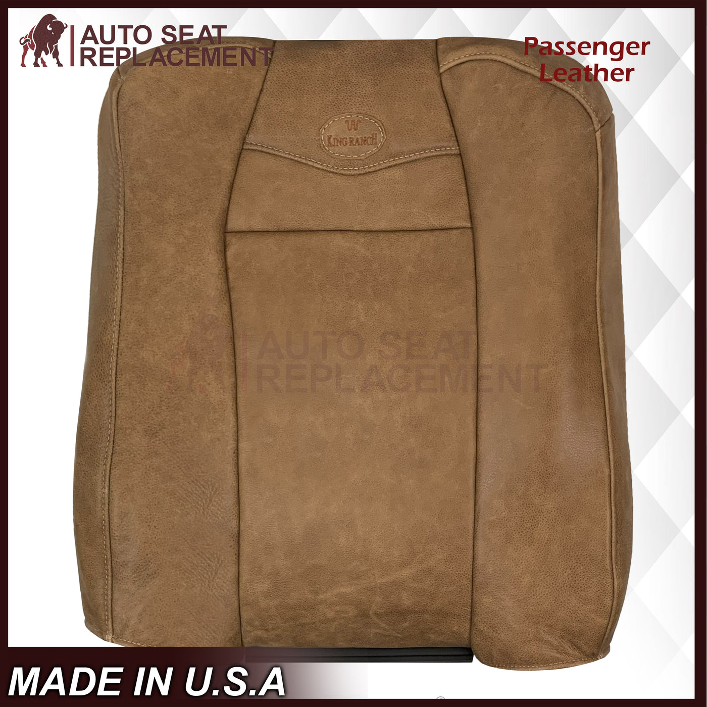 Description 2001-2003 FORD F150 KING RANCH RAW COWHIDE GENUINE LEATHER FRONT SEAT COVERS This item is a new custom-made, OEM replacement, in "King Ranch Tan” with a Logo for the 2001-2003 FORD F150 King Ranch The OEM comes in Leather. Our Leather seat cover matches with your cover. This Replacement Leather Seat Cover is Guaranteed to f...