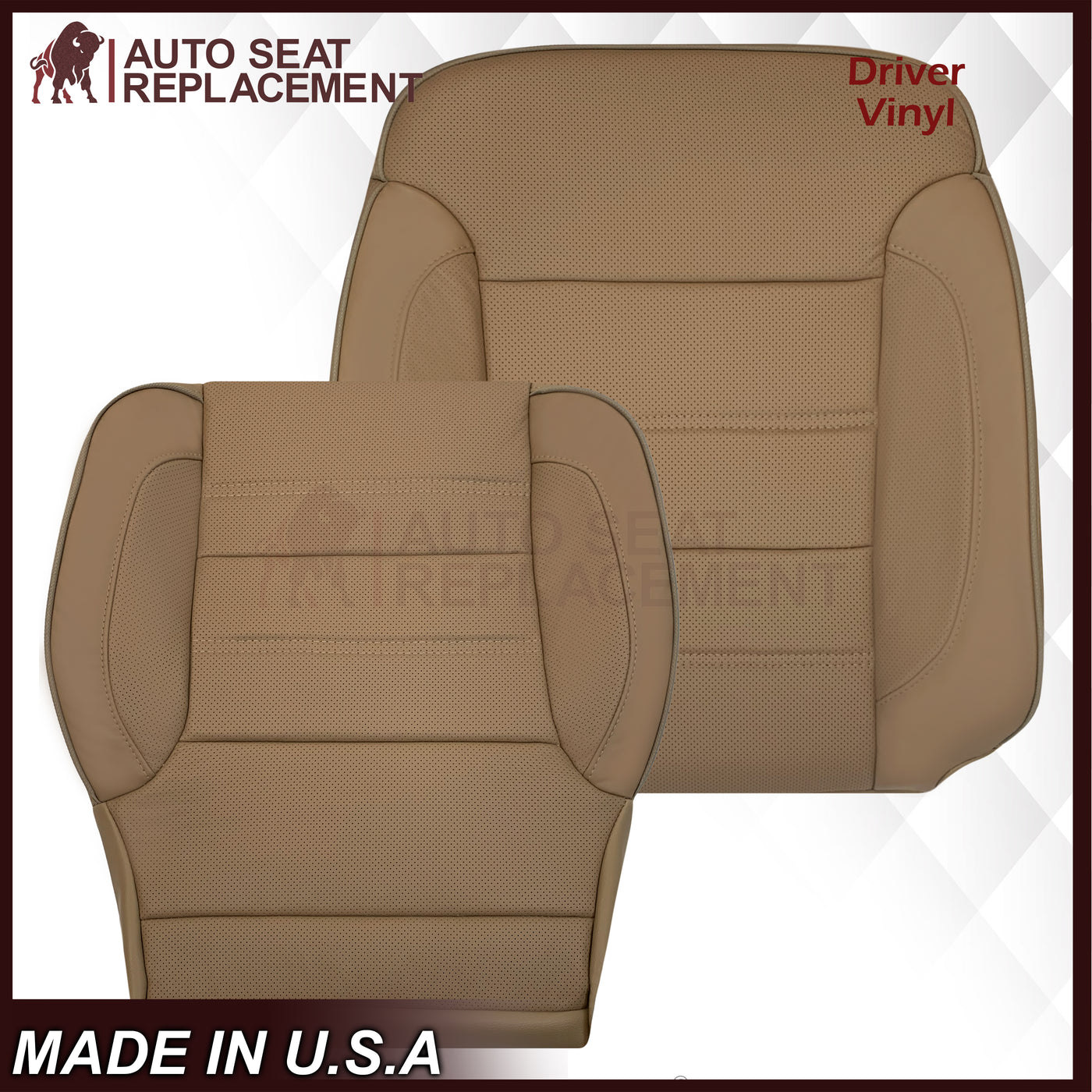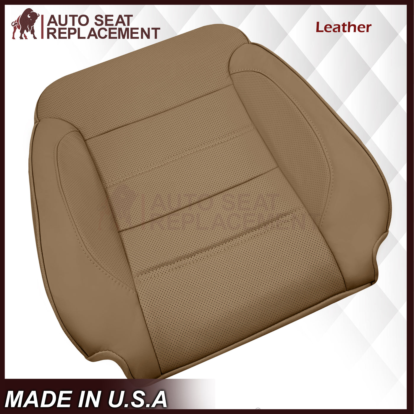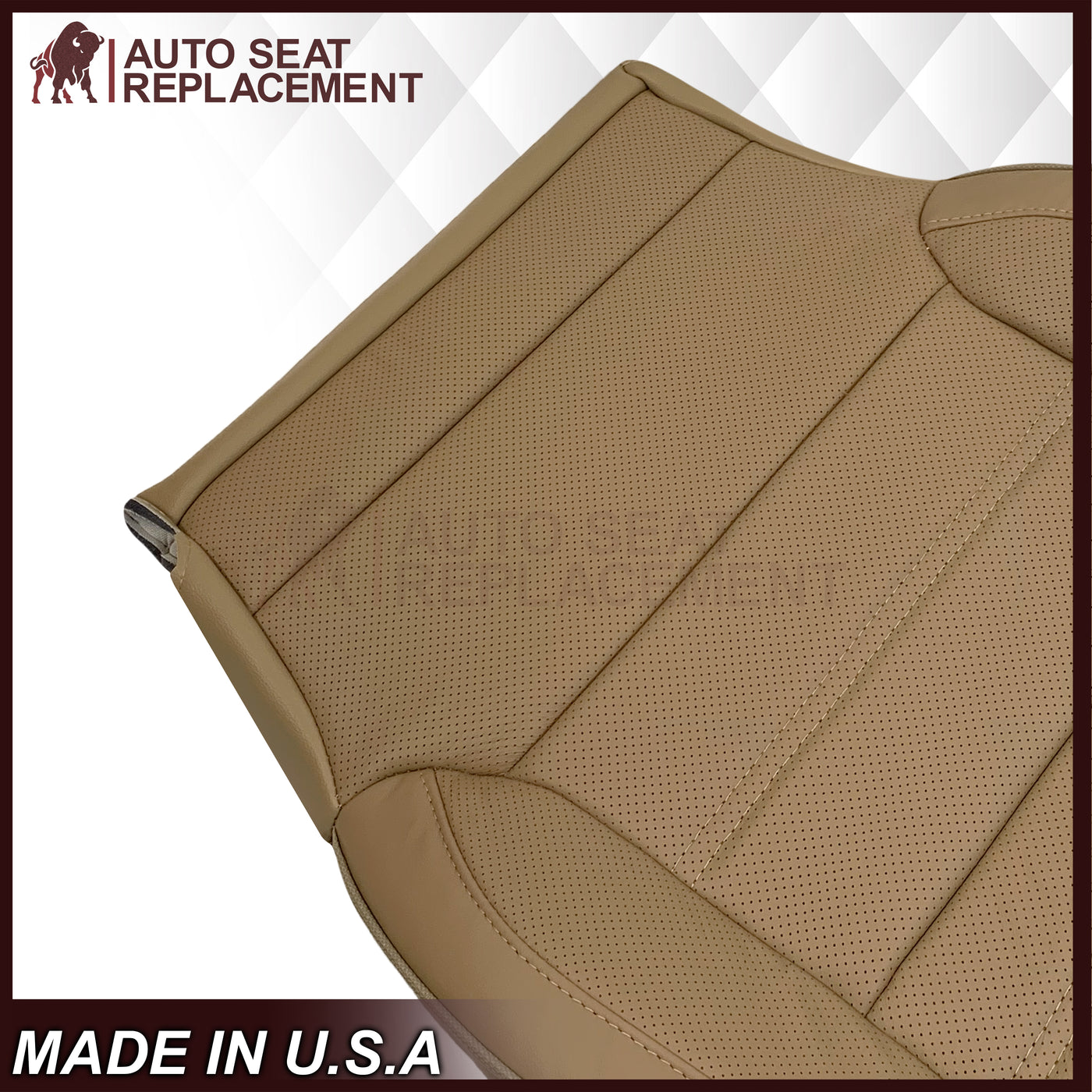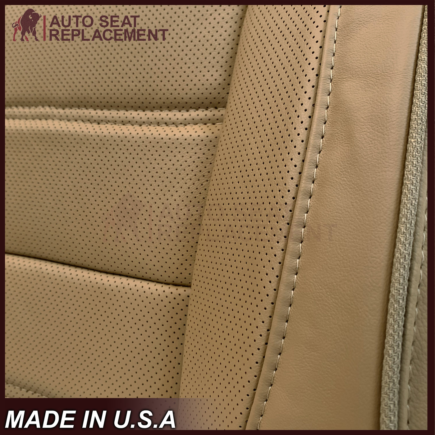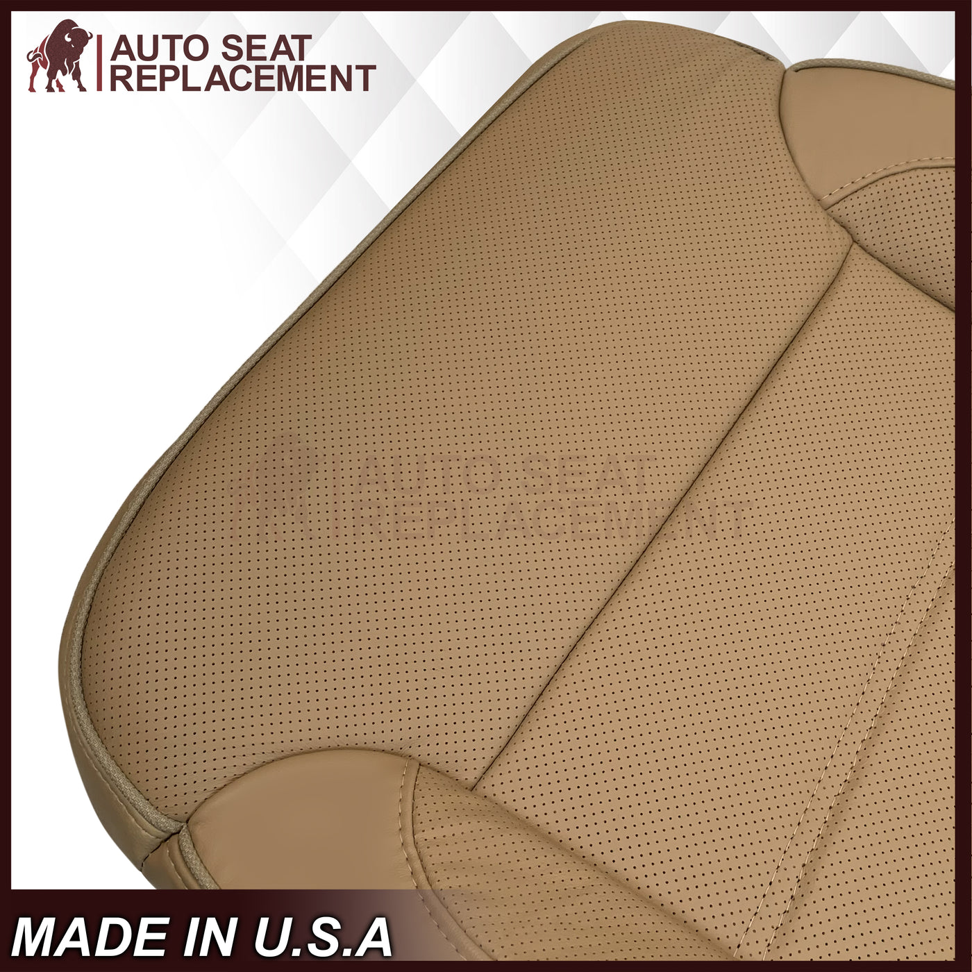 - 2014-2019 GMC Sierra Denali Perforated Genuine Leather Replacement Seat Cover In Dune Tan