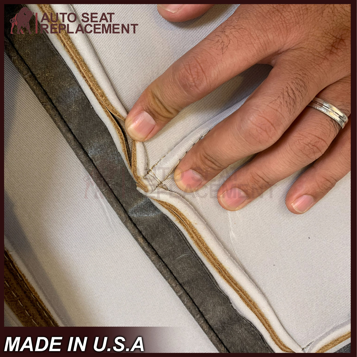 This driver bottom LEATHER seat cover, built to factory specs with OEM quality Leather or Better to match the Interior of your vehicle. Our product is exactly the same as your existing original cover and guaranteed to fit perfectly on your seat foam Pad. The boxing/skirting is vinyl sewn onto foam like OEM. Also foam pad and frame are not included. Any wrinkles seen in the pictures is from being in a box and guaranteed to disappear once installed correctly.