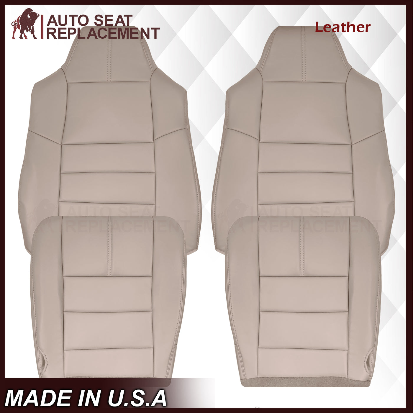 Description 2003-2007 Ford F250 F350 Lariat Leather or Vinyl Seat Cover: Driver & Passenger, Bottom/Top/Lean Back, Tan This item is a new custom-made, OEM replacement, in Medium Parchment "Tan” for 2003 2004 2005 2006 2007 Ford F250 F350 Lariat The OEM comes in Leather. Our Leather seat cover matches with your cover. We also have the opti...