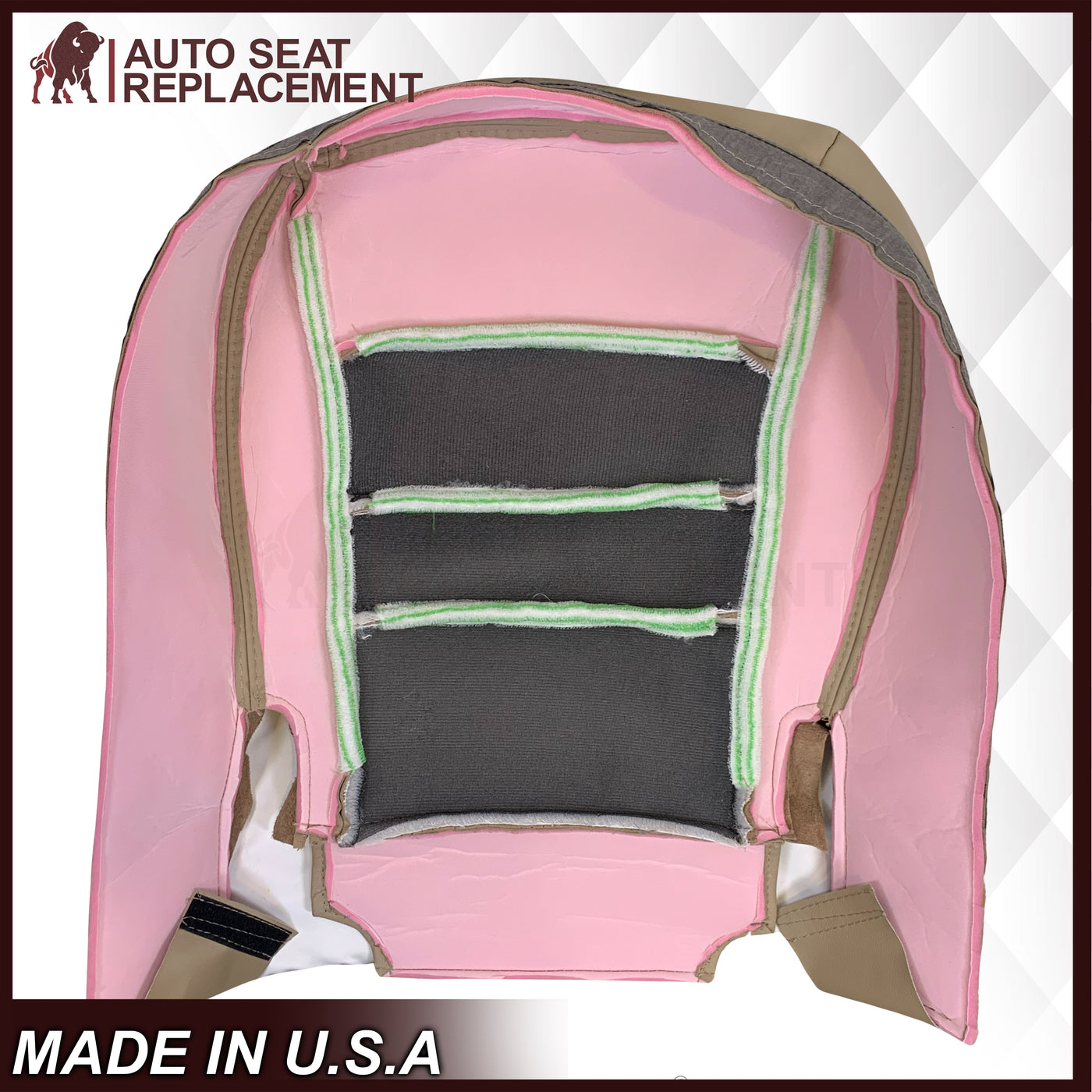 This driver bottom LEATHER seat cover, built to factory specs with OEM quality Leather or Better to match the Interior of your vehicle. Our product is exactly the same as your existing original cover and guaranteed to fit perfectly on your seat foam Pad. The boxing/skirting is vinyl sewn onto foam like OEM. Also foam pad and frame are not included. Any wrinkles seen in the pictures is from being in a box and guaranteed to disappear once installed correctly.