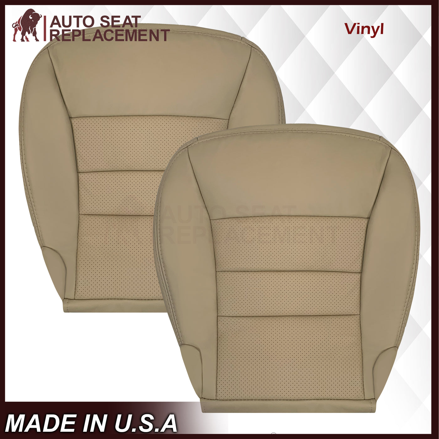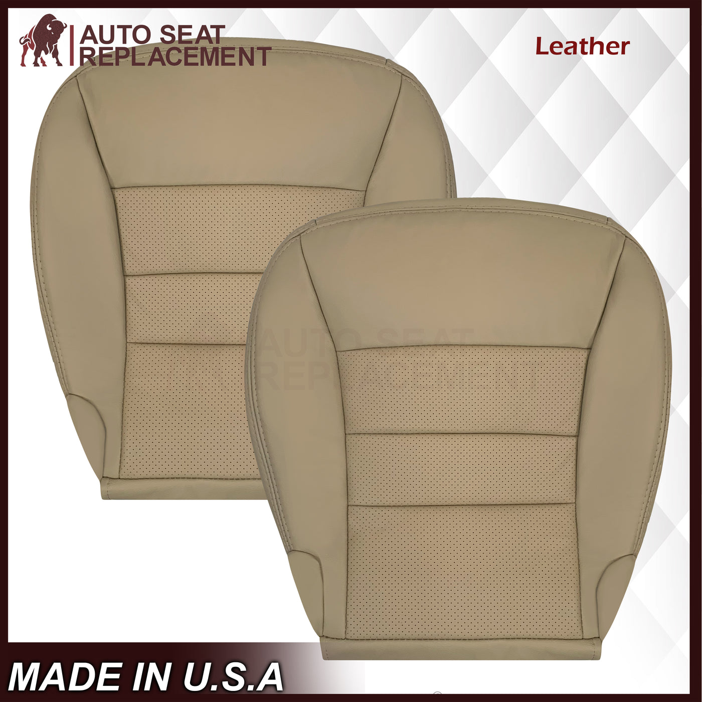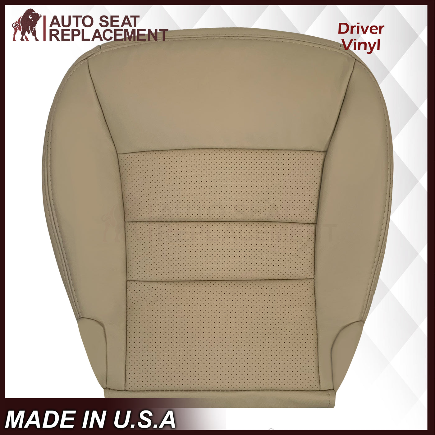 2006 - 2011 Buick Lucerne Driver or Passenger Bottom Perforated Seat Cover In Light Cashmere Tan: Choose Leather or Vinyl