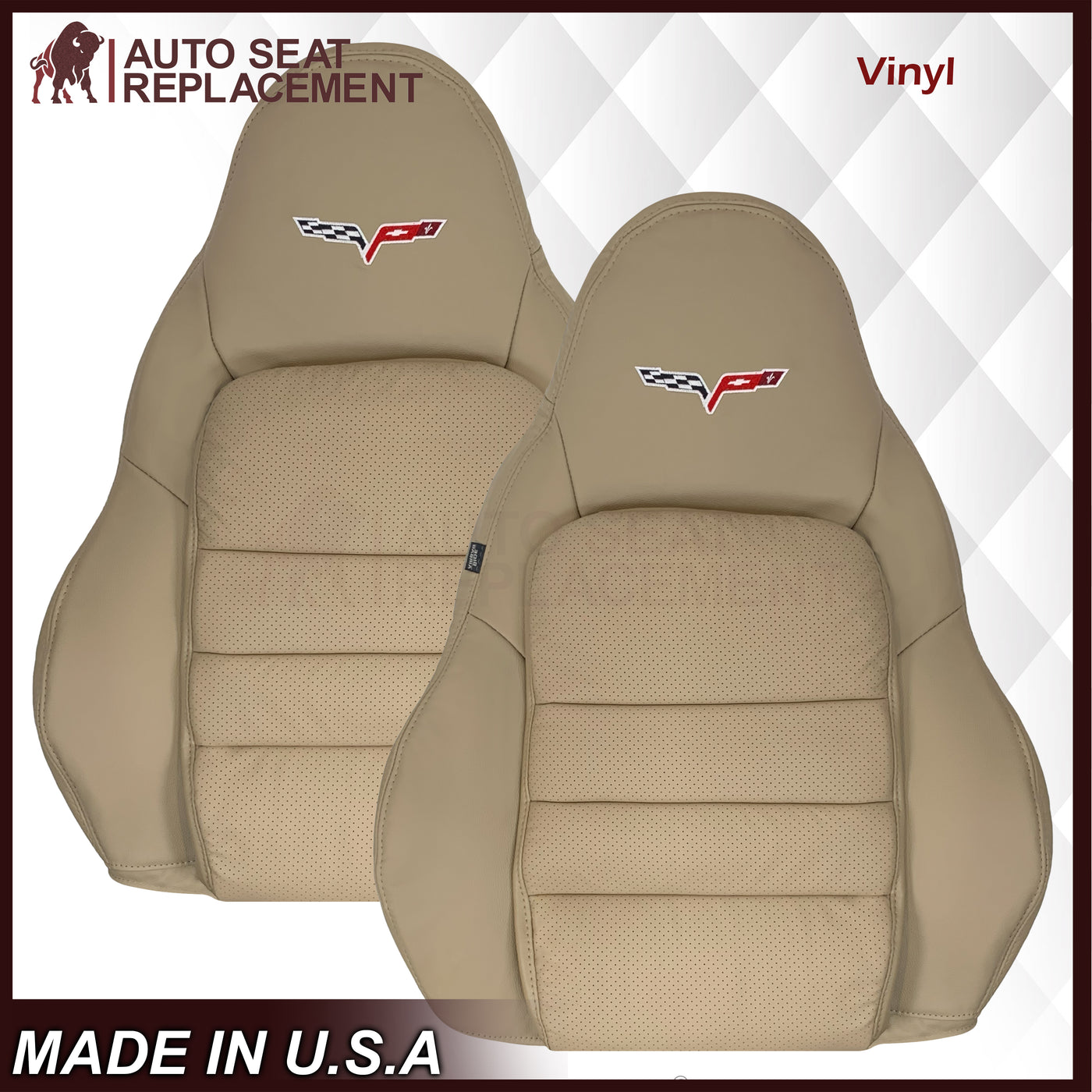 - 2005-2013 Chevy Corvette C6 Replacement Seat Covers: Tan Perforated