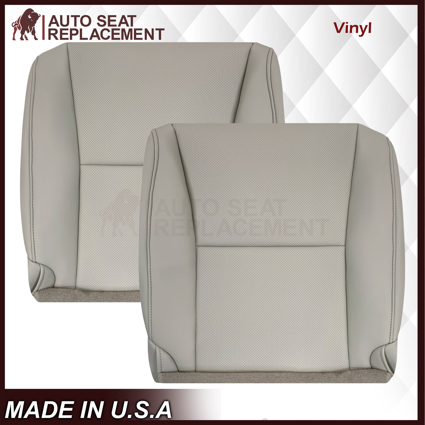 Description 2011 - 2014 Ford F-150 Platinum Perforated Genuine Leather Or Synthetic Leather Replacement Seat Cover in (Steel Gray W/ Black) The OEM comes in Leather. Our Leather seat cover matches with your cover. We also have the option for Vinyl, which is a match Color and Grain to the Factory Leather. Our leather seat cover, built to f...